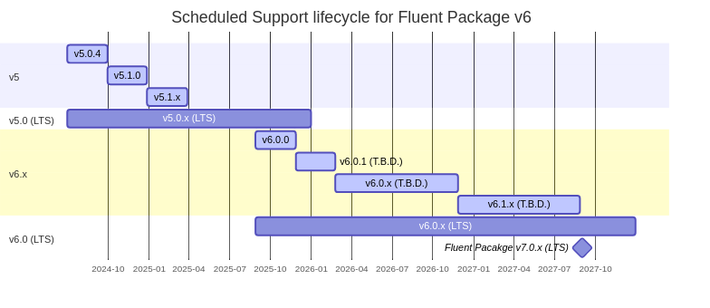 LTS version of fluent-package v6 will be planned support until Dec, 2027. It will meet for your enterprise services.